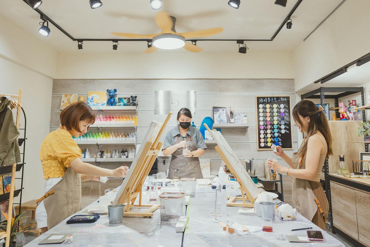 藝術創作是一種很好的紓壓方式,美門藝文工作坊的創作課程也吸引不少忙碌的上班族。